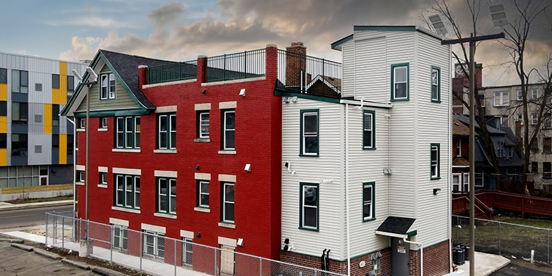 “We purchased the building, reconfigured the design, and led the construction in-house,” says Chaudhary Y. “The project earned the Spirit of Detroit Award for maintaining historical features while transforming the property into affordable housing.”