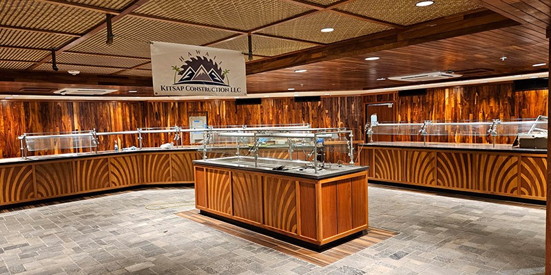 In recent years, Kitsap Construction has completed several full cafeteria kitchen renovations for the Department of Education, including projects on Lānaʻi and Molokaʻi. Many of these facilities have not been updated in decades. “Some of these schools haven’t had new kitchen equipment in 50 years,” Baxter points out. “We go in and completely modernize the kitchens with new equipment, exhaust systems, and finishes.”